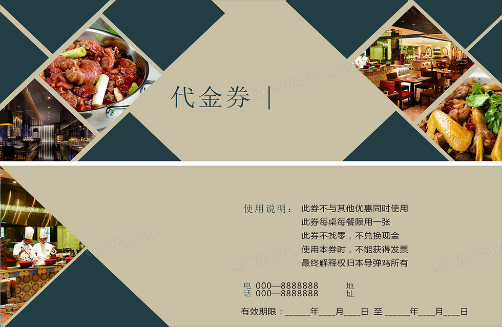 本作品内容为中式餐厅代金券矢量背景素材, 格式为 cdr, 图片尺寸为5425 x 3531, 作品中背景图片无需修改, 源文件无水印,可以直接使用, 欢迎使用熊猫办公。 如认为平台内容涉嫌侵权,可通过邮件:tousu@tukuppt.com提出书面通知,我们将及时处理。