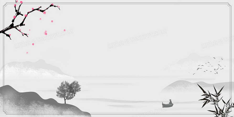 本作品内容为清新中国风梅花水墨竹叶山水背景, 格式为 psd, 大小36 MB, 图片尺寸为9449 x 4724, 作品中背景图片无需修改, 源文件无水印,可以直接使用, 欢迎使用熊猫办公。 如认为平台内容涉嫌侵权,可通过邮件:tousu@tukuppt.com提出书面通知,我们将及时处理。