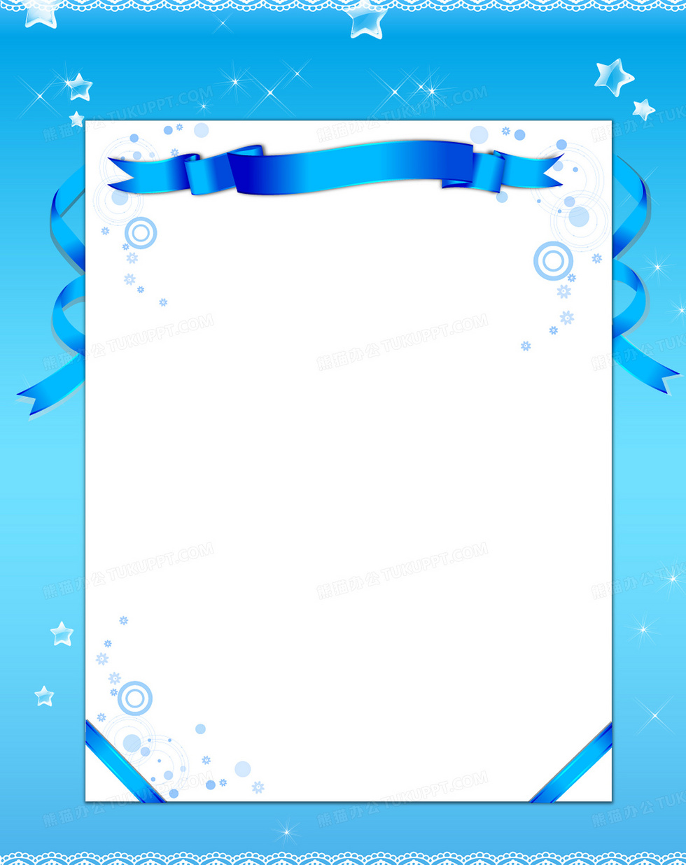 本作品内容为蓝色卡通丝带信纸背景, 格式为 psd, 图片尺寸为4125 x 5204, 作品中背景图片无需修改, 源文件无水印,可以直接使用, 欢迎使用熊猫办公。 如认为平台内容涉嫌侵权,可通过邮件:tousu@tukuppt.com提出书面通知,我们将及时处理。