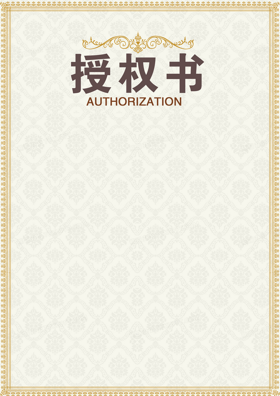 本作品内容为欧式边框授权书背景素材, 格式为 psd, 图片尺寸为2480 x 3508, 作品中背景图片无需修改, 源文件无水印,可以直接使用, 欢迎使用熊猫办公。 如认为平台内容涉嫌侵权,可通过邮件:tousu@tukuppt.com提出书面通知,我们将及时处理。