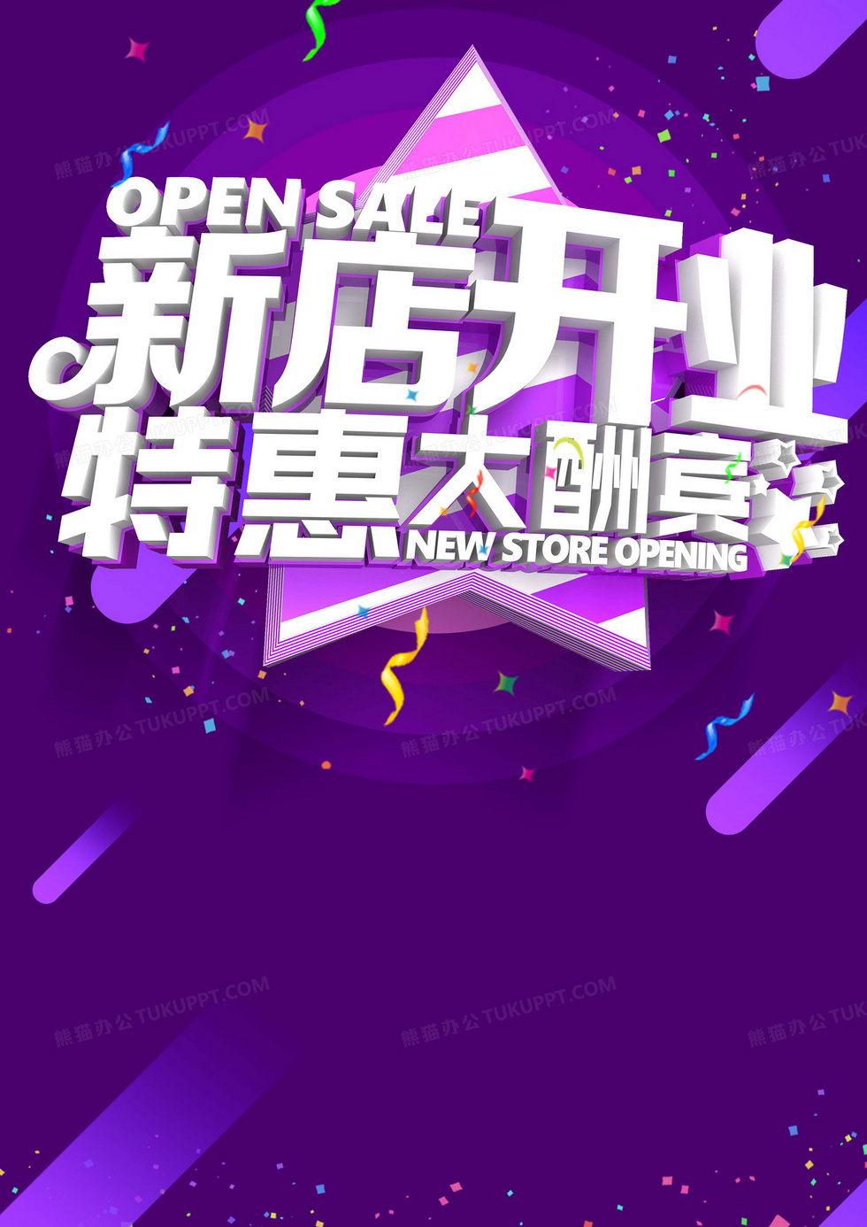 本作品内容为新店开业特惠促销海报背景, 格式为 psd, 图片尺寸为2480 x 3508, 作品中背景图片无需修改, 源文件无水印,可以直接使用, 欢迎使用熊猫办公。 如认为平台内容涉嫌侵权,可通过邮件:tousu@tukuppt.com提出书面通知,我们将及时处理。