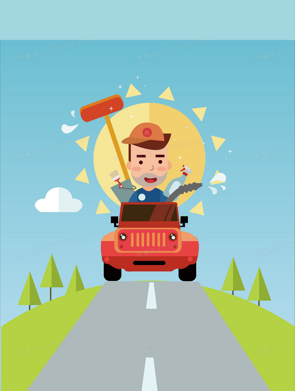 本作品内容为洗车卡通图海报, 格式为 ai, 图片尺寸为3140 x 4167, 作品中背景图片无需修改, 源文件无水印,可以直接使用, 欢迎使用熊猫办公。 如认为平台内容涉嫌侵权,可通过邮件:tousu@tukuppt.com提出书面通知,我们将及时处理。