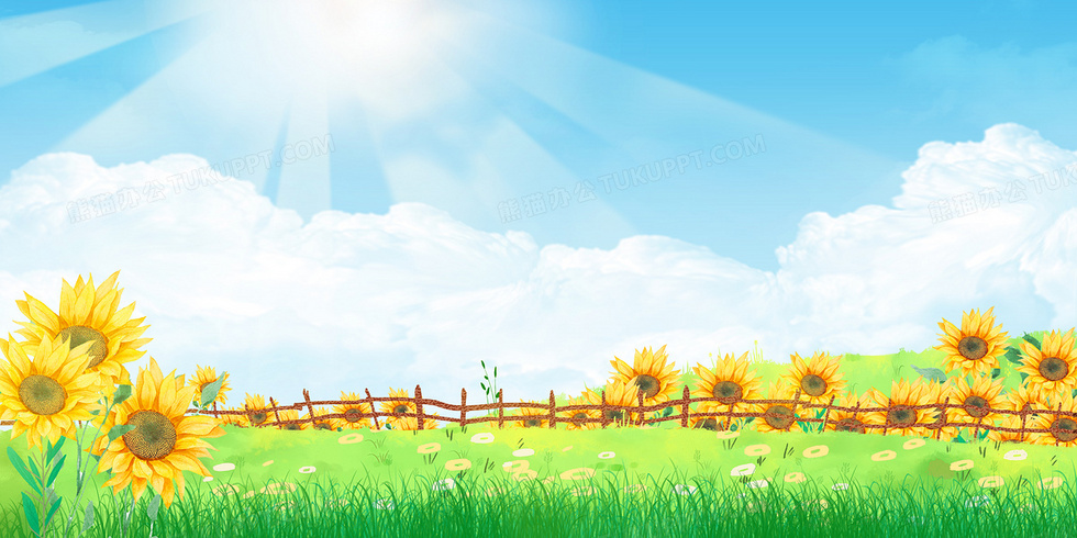 本作品内容为手绘插画风蓝天白云向日葵花田背景, 格式为 psd, 大小58 MB, 图片尺寸为4724 x 2362, 作品中背景图片无需修改, 源文件无水印,可以直接使用, 欢迎使用熊猫办公。 如认为平台内容涉嫌侵权,可通过邮件:tousu@tukuppt.com提出书面通知,我们将及时处理。