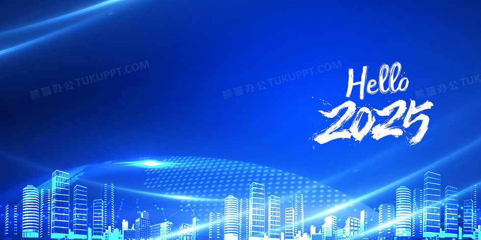 本作品内容为蓝色商务2025城市新年年会背景, 格式为 psd, 大小95 MB, 图片尺寸为4724 x 2362, 作品中背景图片无需修改, 源文件无水印,可以直接使用, 欢迎使用熊猫办公。 如认为平台内容涉嫌侵权,可通过邮件:tousu@tukuppt.com提出书面通知,我们将及时处理。