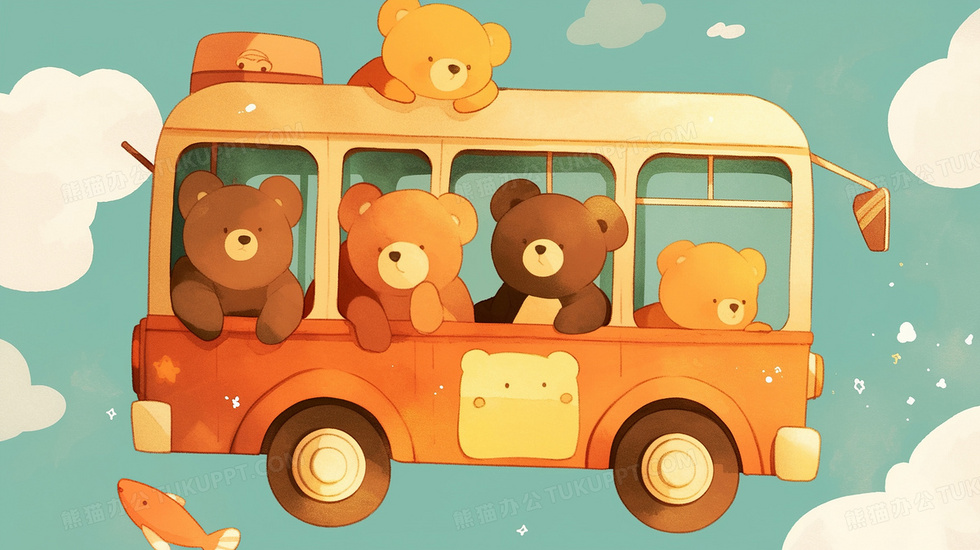 本作品内容为小熊坐公交车可爱小动物卡通插画, 格式为 jpg, 大小3 MB, 图片尺寸为2912 x 1632, 源文件无水印, 欢迎使用熊猫办公。 如认为平台内容涉嫌侵权,可通过邮件:tousu@tukuppt.com提出书面通知,我们将及时处理。