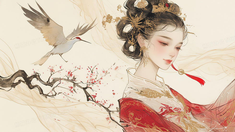本作品内容为国潮风古风美女汉服服饰人物插画, 格式为 jpg, 大小3 MB, 图片尺寸为2912 x 1632, 源文件无水印, 欢迎使用熊猫办公。 如认为平台内容涉嫌侵权,可通过邮件:tousu@tukuppt.com提出书面通知,我们将及时处理。