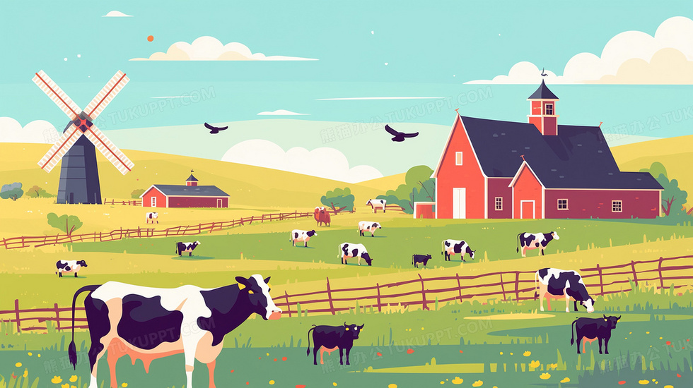 本作品内容为大自然草地草原卡通奶牛风景插画, 格式为 jpg, 大小2 MB, 图片尺寸为2912 x 1632, 源文件无水印, 欢迎使用熊猫办公。 如认为平台内容涉嫌侵权,可通过邮件:tousu@tukuppt.com提出书面通知,我们将及时处理。