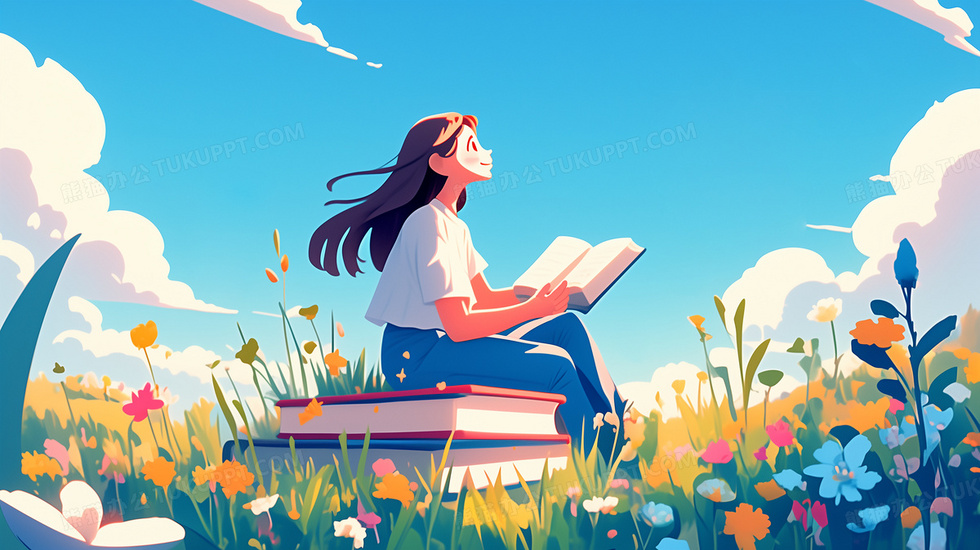 本作品内容为女孩坐在书本上看书创意教育插画, 格式为 jpg, 大小6 MB, 图片尺寸为2912 x 1632, 源文件无水印, 欢迎使用熊猫办公。 如认为平台内容涉嫌侵权,可通过邮件:tousu@tukuppt.com提出书面通知,我们将及时处理。