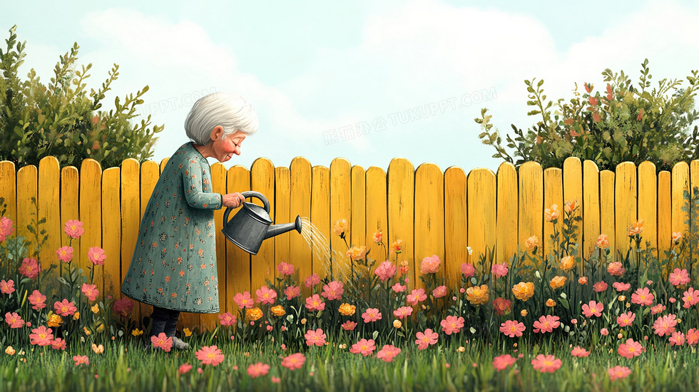 本作品内容为卡通老年人养花背景, 格式为 jpg, 大小3 MB, 图片尺寸为2912 x 1632, 作品中背景图片无需修改, 源文件无水印,可以直接使用, 欢迎使用熊猫办公。 如认为平台内容涉嫌侵权,可通过邮件:tousu@tukuppt.com提出书面通知,我们将及时处理。