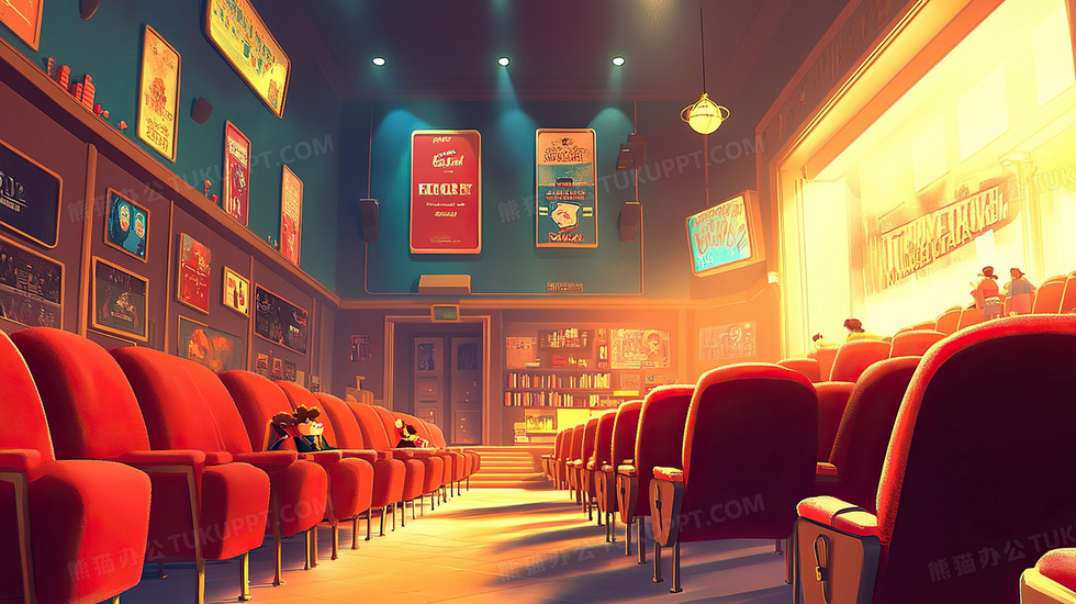 本作品内容为古老电影院场景插画, 格式为 jpg, 大小3 MB, 图片尺寸为2912 x 1632, 源文件无水印, 欢迎使用熊猫办公。 如认为平台内容涉嫌侵权,可通过邮件:tousu@tukuppt.com提出书面通知,我们将及时处理。