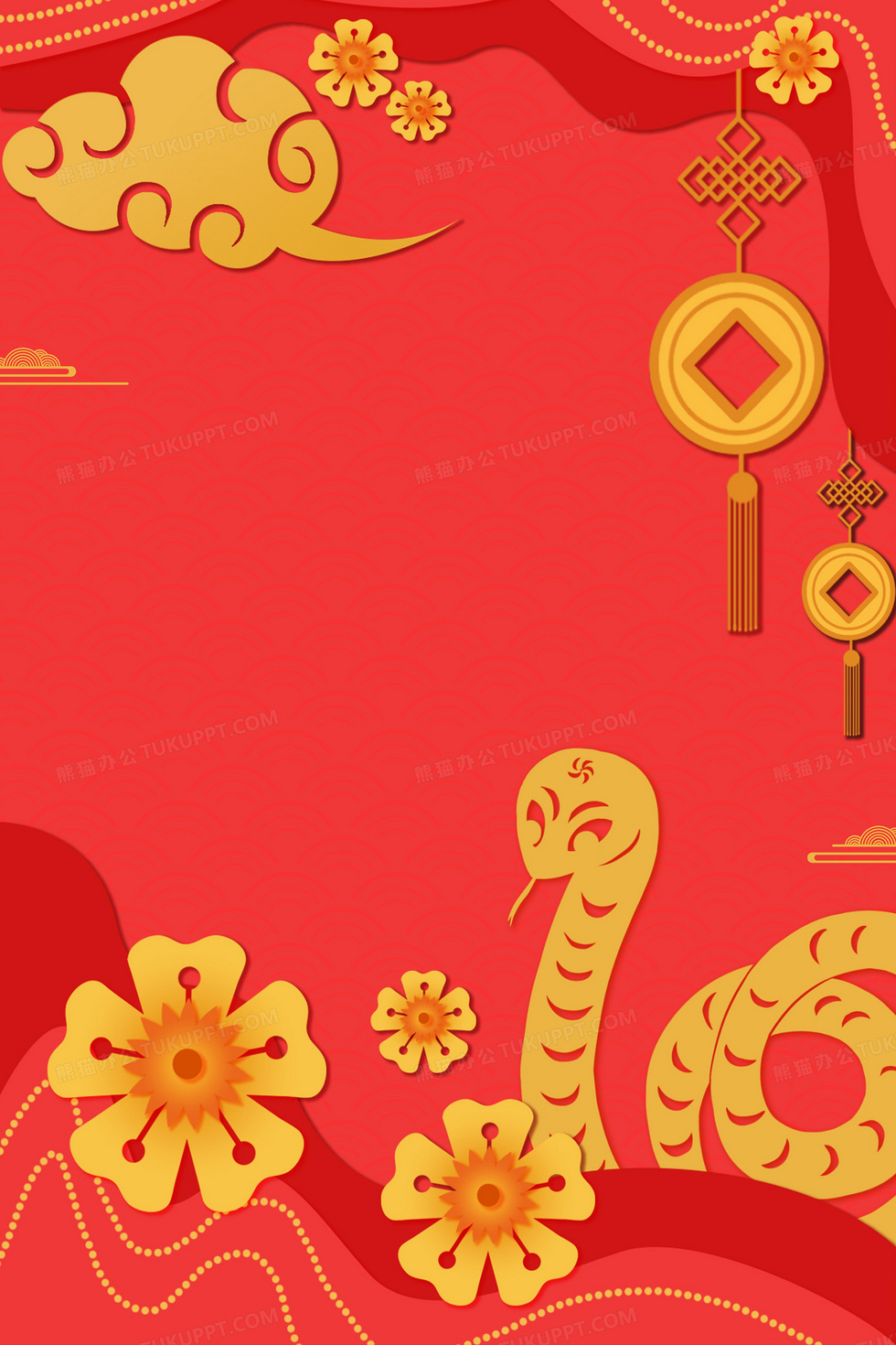 本作品内容为红色古风剪纸新年蛇年背景, 格式为 psd, 大小24 MB, 图片尺寸为3543 x 5314, 作品中背景图片无需修改, 源文件无水印,可以直接使用, 欢迎使用熊猫办公。 如认为平台内容涉嫌侵权,可通过邮件:tousu@tukuppt.com提出书面通知,我们将及时处理。