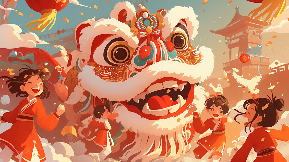 本作品内容为开工仪式舞狮子表演插画, 格式为 jpg, 大小3 MB, 图片尺寸为2912 x 1632, 源文件无水印, 欢迎使用熊猫办公。 如认为平台内容涉嫌侵权,可通过邮件:tousu@tukuppt.com提出书面通知,我们将及时处理。