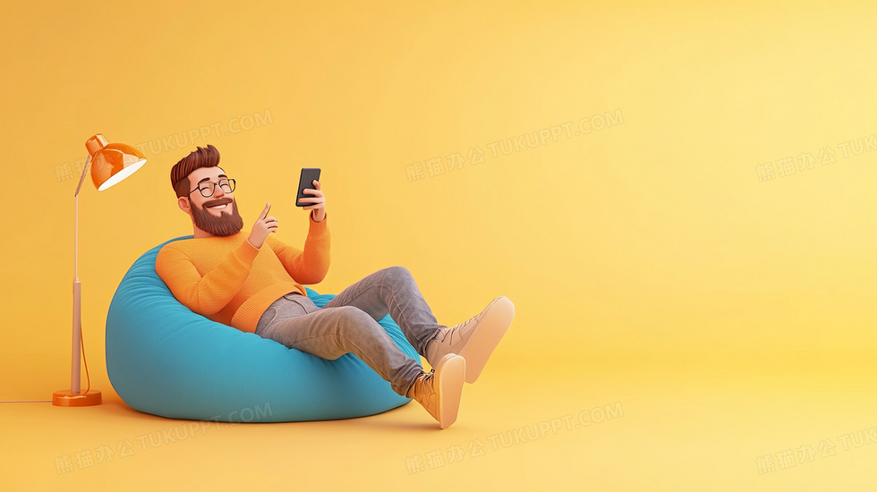 本作品内容为3D卡通风玩手机背景, 格式为 jpg, 大小2 MB, 图片尺寸为2912 x 1632, 作品中背景图片无需修改, 源文件无水印,可以直接使用, 欢迎使用熊猫办公。 如认为平台内容涉嫌侵权,可通过邮件:tousu@tukuppt.com提出书面通知,我们将及时处理。