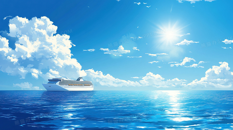 本作品内容为海上游轮与广袤天空插画, 格式为 jpg, 大小3 MB, 图片尺寸为2912 x 1632, 源文件无水印, 欢迎使用熊猫办公。 如认为平台内容涉嫌侵权,可通过邮件:tousu@tukuppt.com提出书面通知,我们将及时处理。