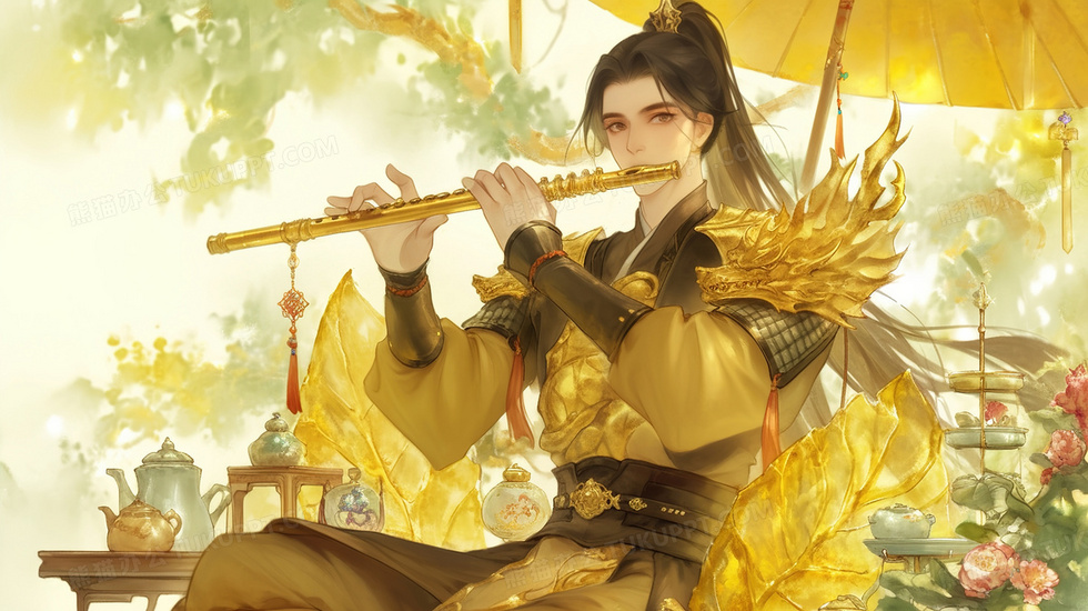 本作品内容为穿战服吹箫的古风将军插画, 格式为 jpg, 大小3 MB, 图片尺寸为2912 x 1632, 源文件无水印, 欢迎使用熊猫办公。 如认为平台内容涉嫌侵权,可通过邮件:tousu@tukuppt.com提出书面通知,我们将及时处理。