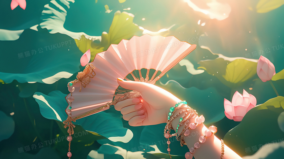 本作品内容为荷叶珠宝手链首饰手部特写插画, 格式为 jpg, 大小3 MB, 图片尺寸为2912 x 1632, 源文件无水印, 欢迎使用熊猫办公。 如认为平台内容涉嫌侵权,可通过邮件:tousu@tukuppt.com提出书面通知,我们将及时处理。