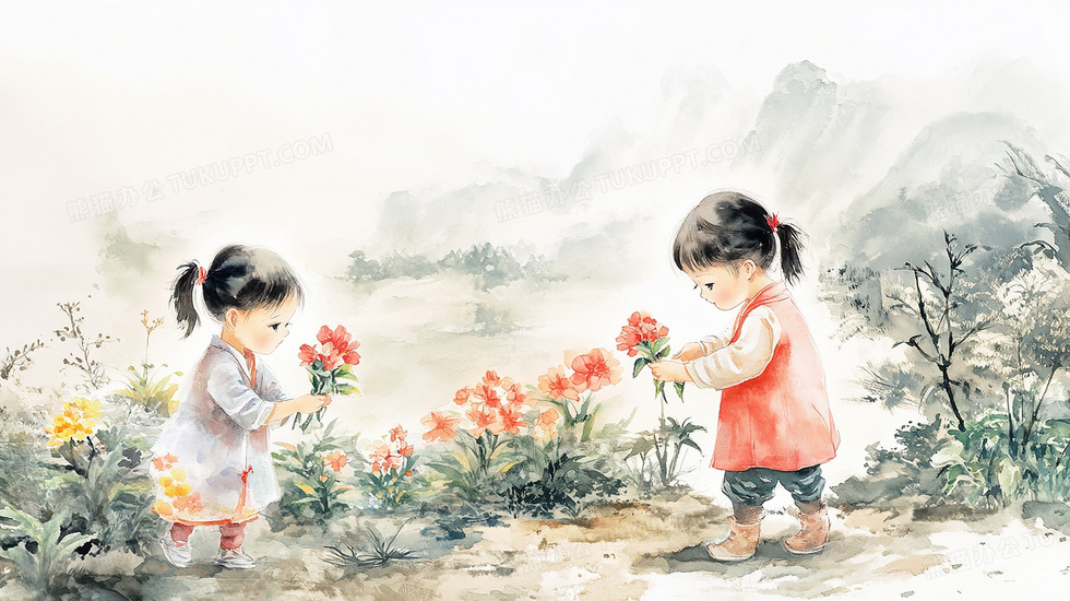 本作品内容为可爱风格水墨画孩子采花插画, 格式为 jpg, 大小3 MB, 图片尺寸为2912 x 1632, 源文件无水印, 欢迎使用熊猫办公。 如认为平台内容涉嫌侵权,可通过邮件:tousu@tukuppt.com提出书面通知,我们将及时处理。