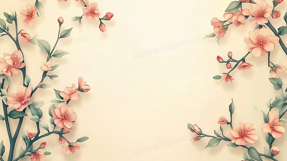 本作品内容为花枝边框简洁背景, 格式为 jpg, 大小7 MB, 图片尺寸为5824 x 3264, 作品中背景图片无需修改, 源文件无水印,可以直接使用, 欢迎使用熊猫办公。 如认为平台内容涉嫌侵权,可通过邮件:tousu@tukuppt.com提出书面通知,我们将及时处理。