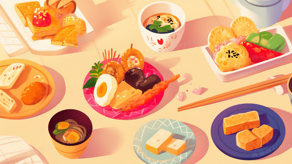 本作品内容为桌子上的美食快餐小吃插画, 格式为 jpg, 大小3 MB, 图片尺寸为2912 x 1632, 源文件无水印, 欢迎使用熊猫办公。 如认为平台内容涉嫌侵权,可通过邮件:tousu@tukuppt.com提出书面通知,我们将及时处理。