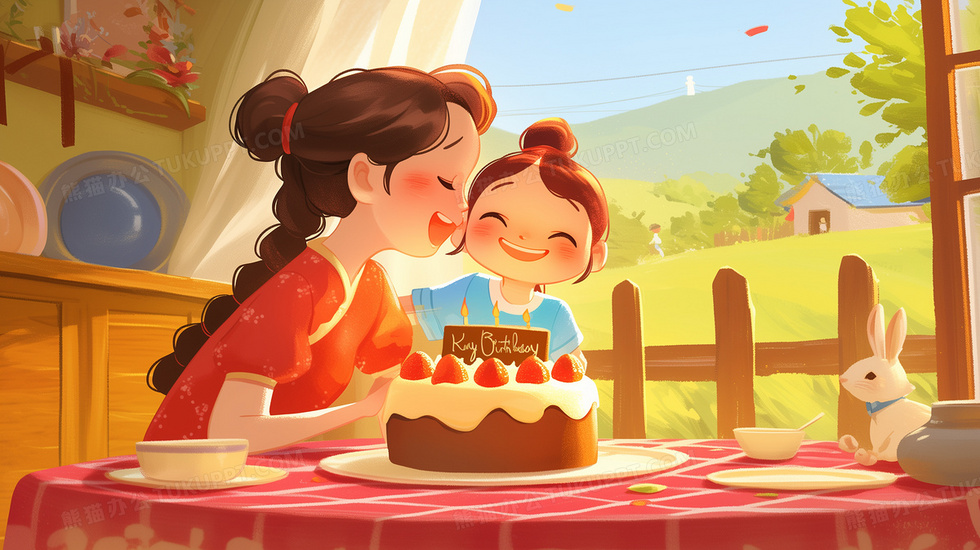 本作品内容为妈妈和女儿在家中过生日插画, 格式为 jpg, 大小6 MB, 图片尺寸为2912 x 1632, 源文件无水印, 欢迎使用熊猫办公。 如认为平台内容涉嫌侵权,可通过邮件:tousu@tukuppt.com提出书面通知,我们将及时处理。