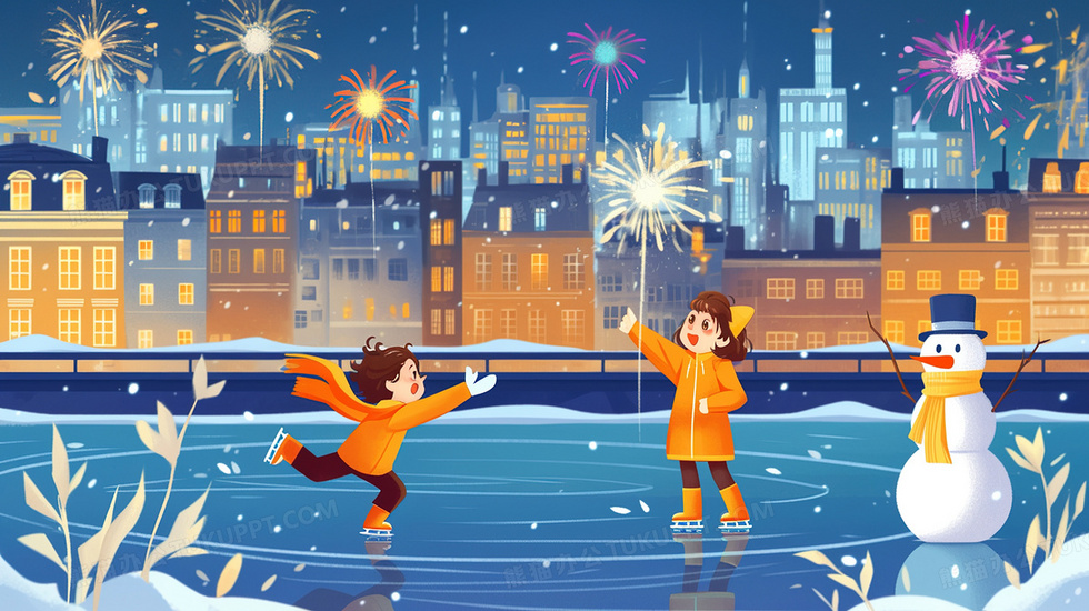 本作品内容为烟花下滑雪的卡通儿童雪人插画, 格式为 jpg, 大小3 MB, 图片尺寸为2912 x 1632, 源文件无水印, 欢迎使用熊猫办公。 如认为平台内容涉嫌侵权,可通过邮件:tousu@tukuppt.com提出书面通知,我们将及时处理。