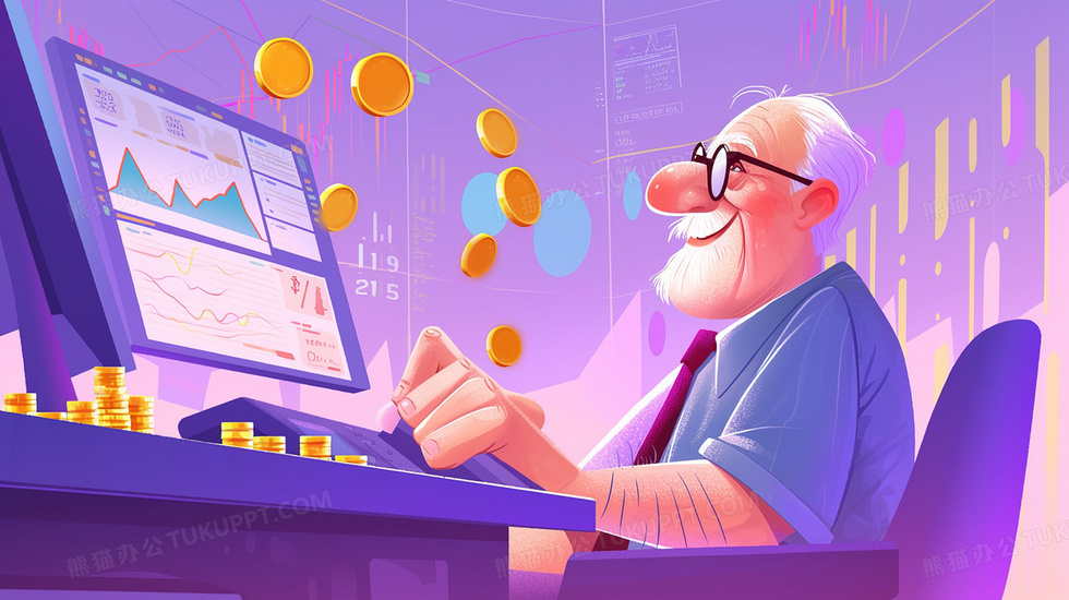本作品内容为查看股市走势图的老爷爷金融投资插画, 格式为 jpg, 大小2 MB, 图片尺寸为2912 x 1632, 源文件无水印, 欢迎使用熊猫办公。 如认为平台内容涉嫌侵权,可通过邮件:tousu@tukuppt.com提出书面通知,我们将及时处理。