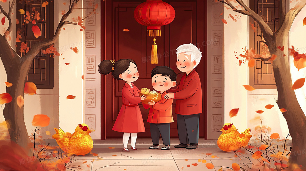 本作品内容为红色喜庆春节过年拜年走亲戚插画, 格式为 jpg, 大小3 MB, 图片尺寸为2912 x 1632, 源文件无水印, 欢迎使用熊猫办公。 如认为平台内容涉嫌侵权,可通过邮件:tousu@tukuppt.com提出书面通知,我们将及时处理。