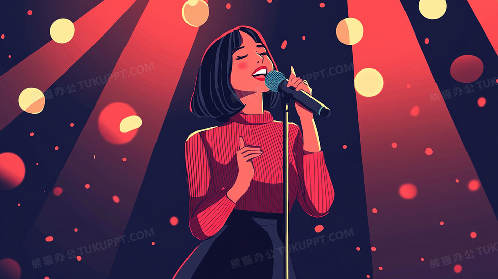 本作品内容为职业人物舞台唱歌的歌手插画, 格式为 jpg, 大小2 MB, 图片尺寸为2912 x 1632, 源文件无水印, 欢迎使用熊猫办公。 如认为平台内容涉嫌侵权,可通过邮件:tousu@tukuppt.com提出书面通知,我们将及时处理。
