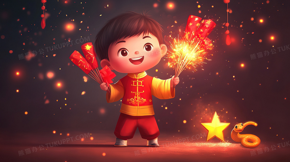 本作品内容为蛇年春节放炮竹卡通男孩与蛇插画, 格式为 jpg, 大小3 MB, 图片尺寸为2912 x 1632, 源文件无水印, 欢迎使用熊猫办公。 如认为平台内容涉嫌侵权,可通过邮件:tousu@tukuppt.com提出书面通知,我们将及时处理。