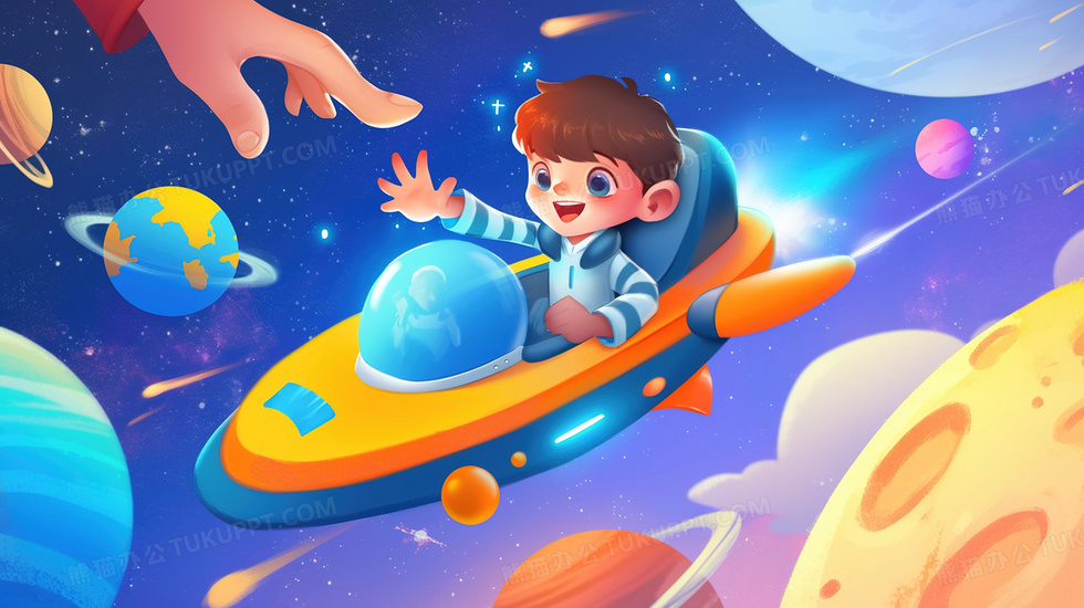 本作品内容为坐宇宙飞船月球探索卡通男孩插画, 格式为 jpg, 大小3 MB, 图片尺寸为2912 x 1632, 源文件无水印, 欢迎使用熊猫办公。 如认为平台内容涉嫌侵权,可通过邮件:tousu@tukuppt.com提出书面通知,我们将及时处理。
