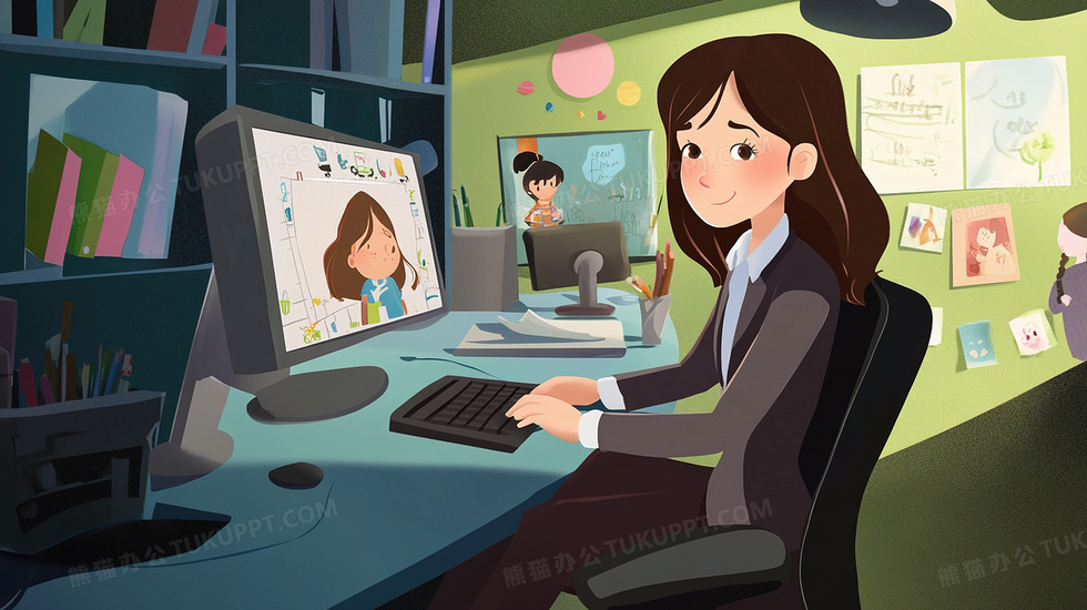 本作品内容为女性职业形象职场白领电脑前工作插画, 格式为 jpg, 大小3 MB, 图片尺寸为2912 x 1632, 源文件无水印, 欢迎使用熊猫办公。 如认为平台内容涉嫌侵权,可通过邮件:tousu@tukuppt.com提出书面通知,我们将及时处理。