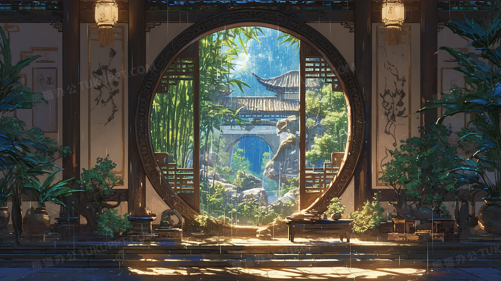本作品内容为中国风中式建筑庭院门洞古建筑插画, 格式为 jpg, 大小4 MB, 图片尺寸为2912 x 1632, 源文件无水印, 欢迎使用熊猫办公。 如认为平台内容涉嫌侵权,可通过邮件:tousu@tukuppt.com提出书面通知,我们将及时处理。