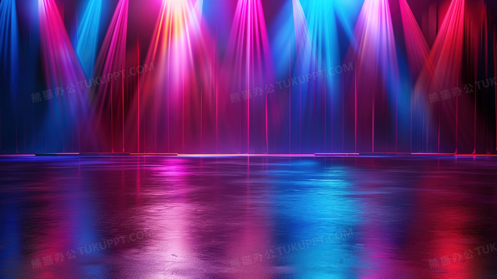 本作品内容为霓虹灯舞台射灯灯光背景, 格式为 jpg, 大小3 MB, 图片尺寸为2912 x 1632, 作品中背景图片无需修改, 源文件无水印,可以直接使用, 欢迎使用熊猫办公。 如认为平台内容涉嫌侵权,可通过邮件:tousu@tukuppt.com提出书面通知,我们将及时处理。