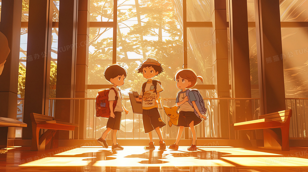 本作品内容为背着书包参观博物馆的小朋友插画, 格式为 jpg, 大小5 MB, 图片尺寸为2912 x 1632, 源文件无水印, 欢迎使用熊猫办公。 如认为平台内容涉嫌侵权,可通过邮件:tousu@tukuppt.com提出书面通知,我们将及时处理。