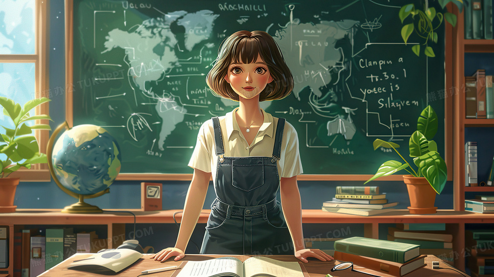 本作品内容为卡通女老师站在黑板前教师节插画, 格式为 jpg, 大小3 MB, 图片尺寸为2912 x 1632, 源文件无水印, 欢迎使用熊猫办公。 如认为平台内容涉嫌侵权,可通过邮件:tousu@tukuppt.com提出书面通知,我们将及时处理。
