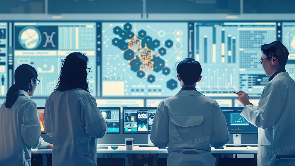 本作品内容为一群医生穿白大褂研究讨论插画, 格式为 jpg, 大小3 MB, 图片尺寸为2912 x 1632, 源文件无水印, 欢迎使用熊猫办公。 如认为平台内容涉嫌侵权,可通过邮件:tousu@tukuppt.com提出书面通知,我们将及时处理。