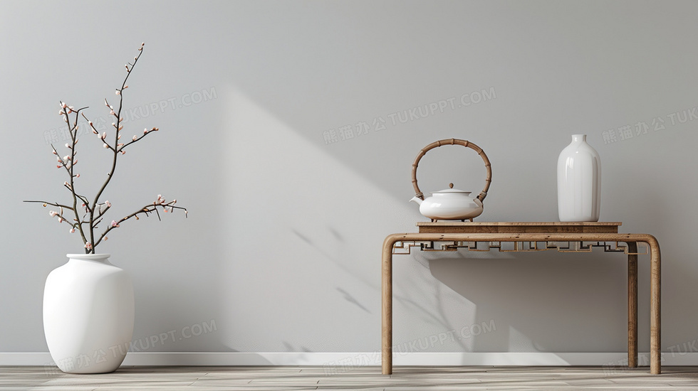 本作品内容为新中式家居装饰简约背景, 格式为 jpg, 大小2 MB, 图片尺寸为2912 x 1632, 作品中背景图片无需修改, 源文件无水印,可以直接使用, 欢迎使用熊猫办公。 如认为平台内容涉嫌侵权,可通过邮件:tousu@tukuppt.com提出书面通知,我们将及时处理。