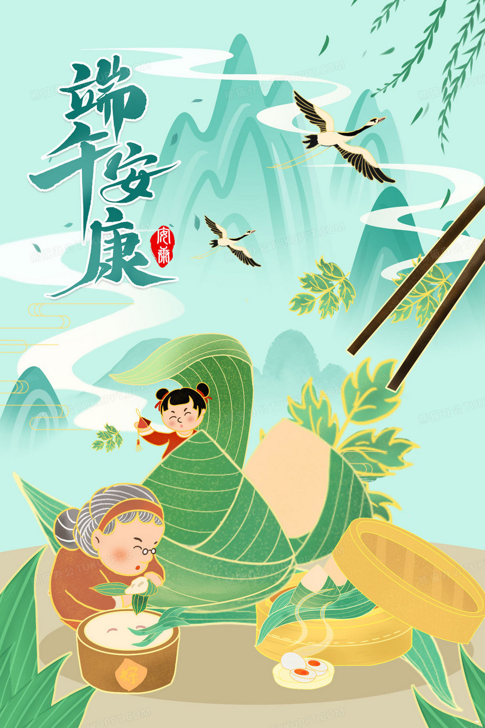 本作品内容为国潮风端午安康老奶奶给孙女包粽子插画, 格式为 psd, 大小116 MB, 请使用软件PhotoShop(CC)打开, 源文件无水印, 欢迎使用熊猫办公。 如认为平台内容涉嫌侵权,可通过邮件:tousu@tukuppt.com提出书面通知,我们将及时处理。