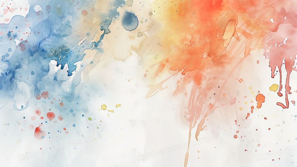 本作品内容为彩色水彩晕染背景, 格式为 jpg, 大小3 MB, 图片尺寸为2912 x 1632, 作品中背景图片无需修改, 源文件无水印,可以直接使用, 欢迎使用熊猫办公。 如认为平台内容涉嫌侵权,可通过邮件:tousu@tukuppt.com提出书面通知,我们将及时处理。