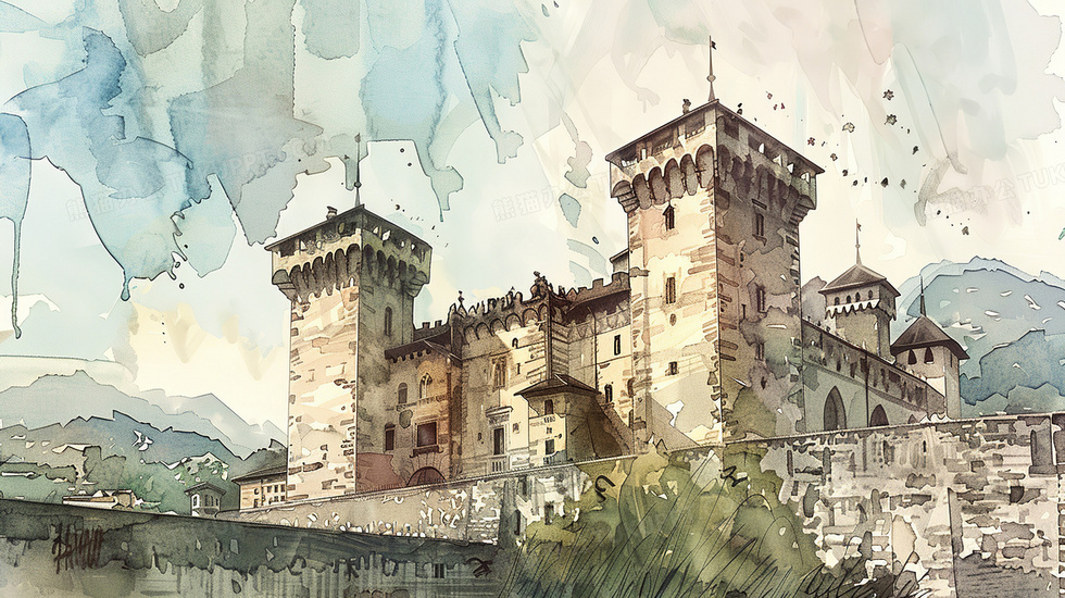 首页 > 插画 > 科技艺术 > 水彩手绘 > 瑞士卢加诺城堡手绘水彩插画