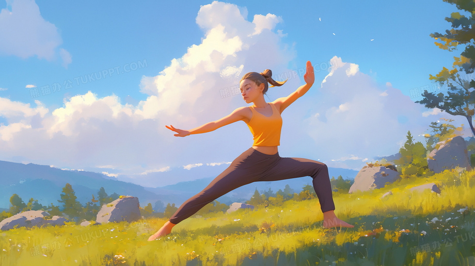本作品内容为清晨草地武术运动锻炼的女子插画, 格式为 jpg, 大小3 MB, 图片尺寸为2912 x 1632, 源文件无水印, 欢迎使用熊猫办公。 如认为平台内容涉嫌侵权,可通过邮件:tousu@tukuppt.com提出书面通知,我们将及时处理。