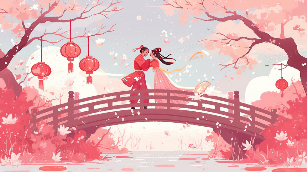 本作品内容为鹊桥七夕牛郎织女中国风情人节插画, 格式为 jpg, 大小3 MB, 图片尺寸为2912 x 1632, 源文件无水印, 欢迎使用熊猫办公。 如认为平台内容涉嫌侵权,可通过邮件:tousu@tukuppt.com提出书面通知,我们将及时处理。
