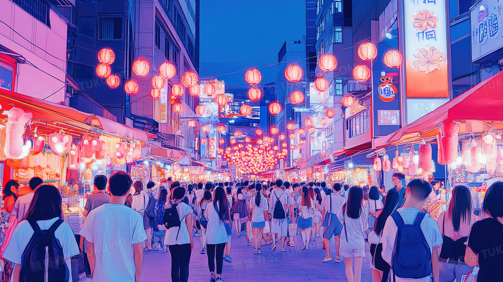 本作品内容为唯美风手绘新年街道夜市的插画, 格式为 jpg, 大小4 MB, 图片尺寸为2912 x 1632, 源文件无水印, 欢迎使用熊猫办公。 如认为平台内容涉嫌侵权,可通过邮件:tousu@tukuppt.com提出书面通知,我们将及时处理。