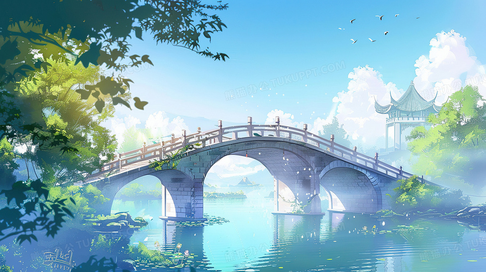 本作品内容为中国古建筑桥梁插画, 格式为 jpg, 大小4 MB, 图片尺寸为2912 x 1632, 源文件无水印, 欢迎使用熊猫办公。 如认为平台内容涉嫌侵权,可通过邮件:tousu@tukuppt.com提出书面通知,我们将及时处理。
