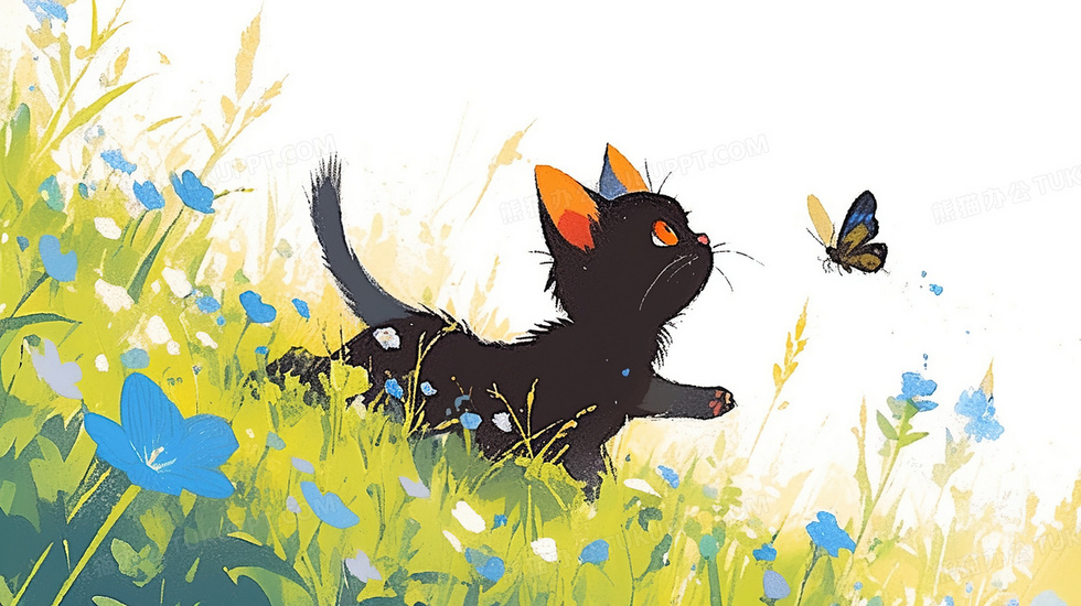 本作品内容为夏季草地抓蝴蝶的黑猫插画, 格式为 jpg, 大小3 MB, 图片尺寸为2912 x 1632, 源文件无水印, 欢迎使用熊猫办公。 如认为平台内容涉嫌侵权,可通过邮件:tousu@tukuppt.com提出书面通知,我们将及时处理。