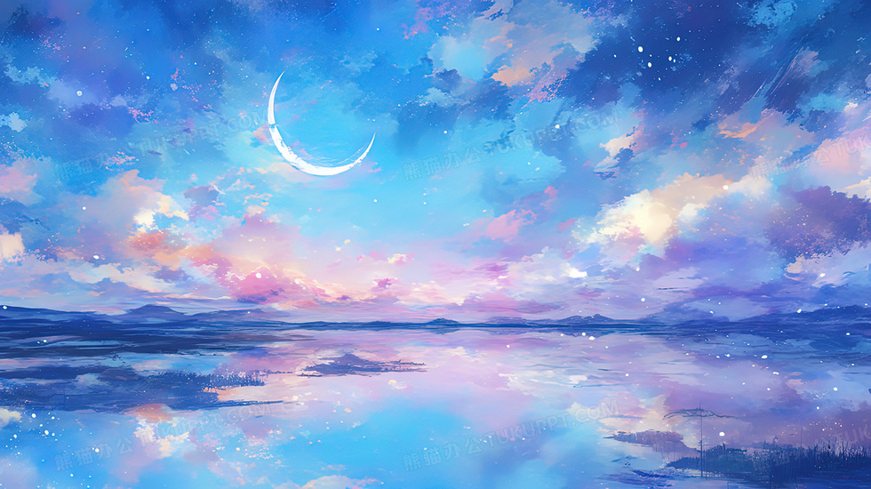 首页 > 插画 > 科技艺术 > 水彩手绘 > 唯美梦幻紫色夜空明月景色插画