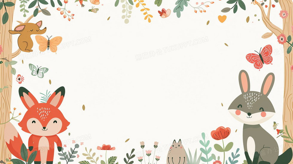 本作品内容为可爱狐狸卡通动物边框背景, 格式为 jpg, 大小2 MB, 图片尺寸为2912 x 1632, 作品中背景图片无需修改, 源文件无水印,可以直接使用, 欢迎使用熊猫办公。 如认为平台内容涉嫌侵权,可通过邮件:tousu@tukuppt.com提出书面通知,我们将及时处理。