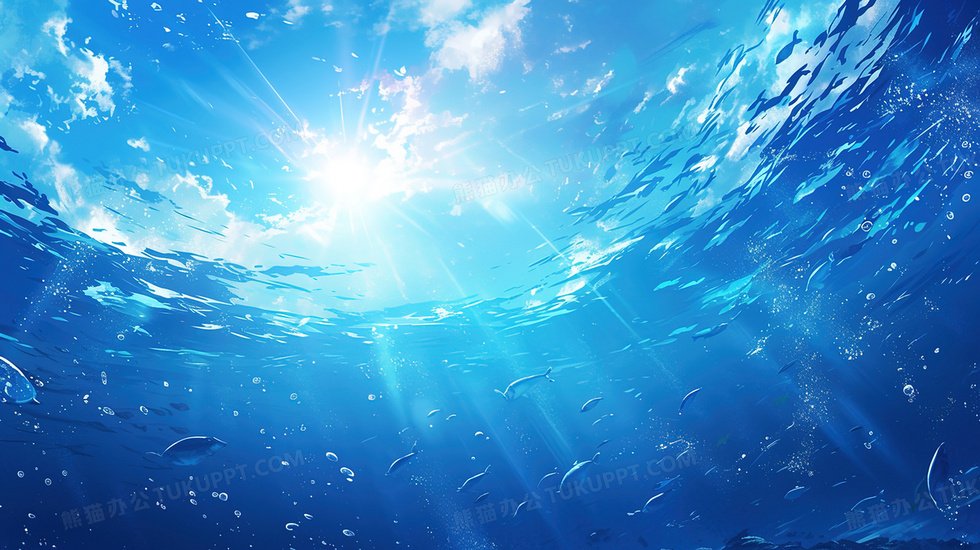 本作品内容为阳光照射清澈海洋插画, 格式为 jpg, 大小3 MB, 图片尺寸为2912 x 1632, 源文件无水印, 欢迎使用熊猫办公。 如认为平台内容涉嫌侵权,可通过邮件:tousu@tukuppt.com提出书面通知,我们将及时处理。