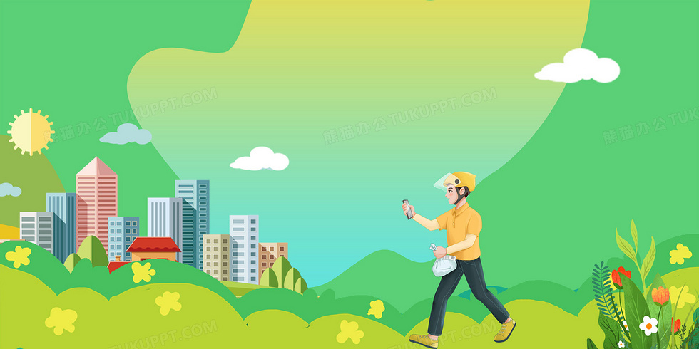 本作品内容为扁平插画风送外卖背景, 格式为 psd, 大小11 MB, 图片尺寸为4724 x 2362, 作品中背景图片无需修改, 源文件无水印,可以直接使用, 欢迎使用熊猫办公。 如认为平台内容涉嫌侵权,可通过邮件:tousu@tukuppt.com提出书面通知,我们将及时处理。