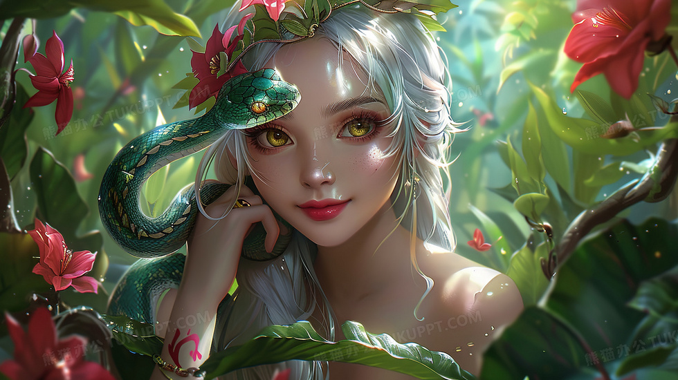 本作品内容为森林里的美女与青蛇插画, 格式为 jpg, 大小3 MB, 图片尺寸为2912 x 1632, 源文件无水印, 欢迎使用熊猫办公。 如认为平台内容涉嫌侵权,可通过邮件:tousu@tukuppt.com提出书面通知,我们将及时处理。